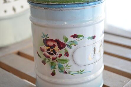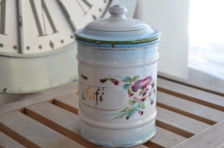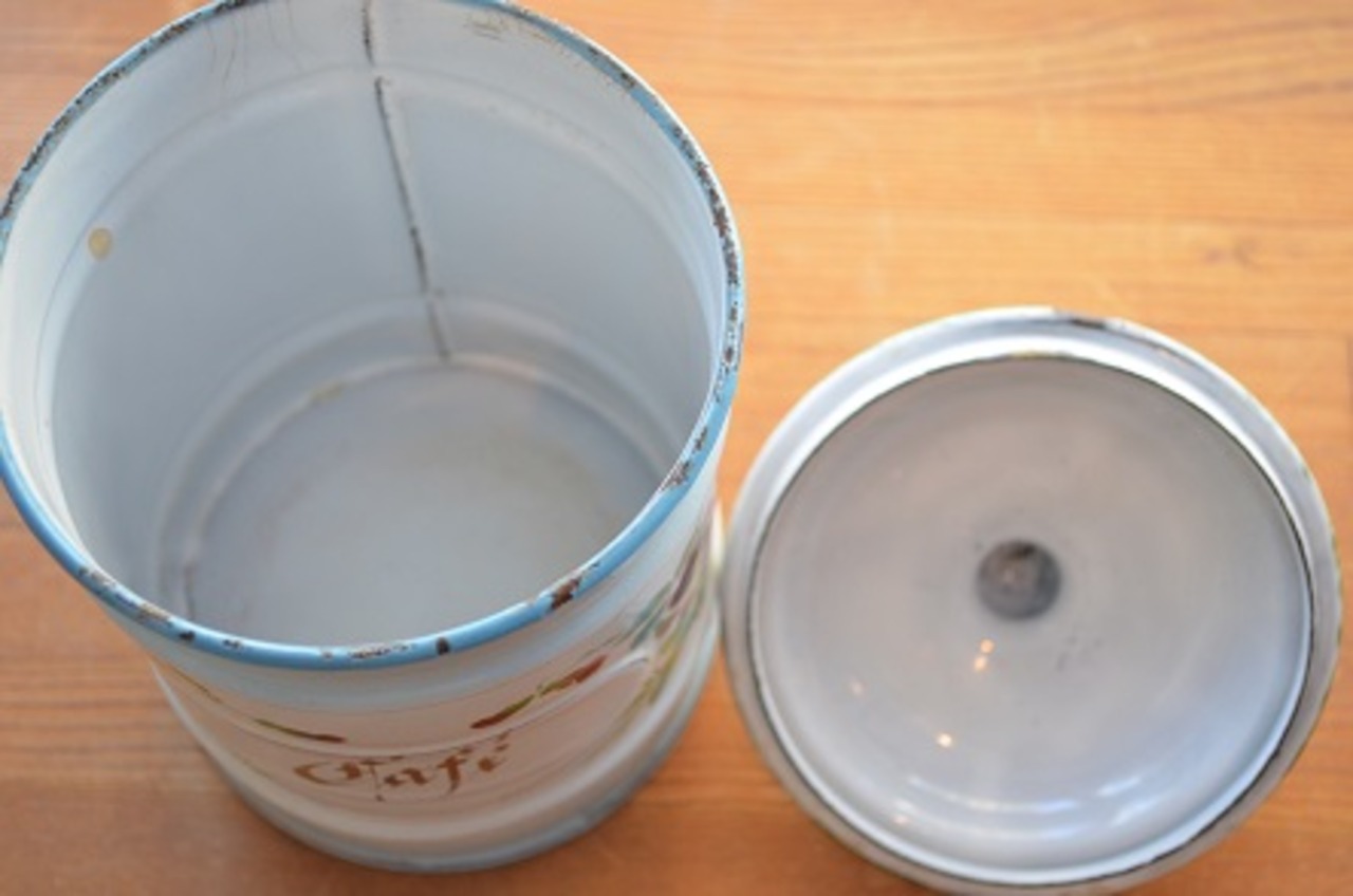 コンディション : 経年による、シミ、キズ、汚れ、サビ、カケなど若干ありますが、比較的綺麗で良好と思います。尚、本体上部縁がブルーで、蓋の縁がグリーンです。もしかして蓋はオリジナルではないかもしれませんが、違和感はあまり感じられません。価格はその分少しお安く設定いたしました
