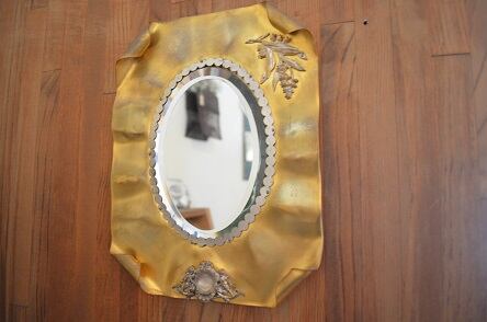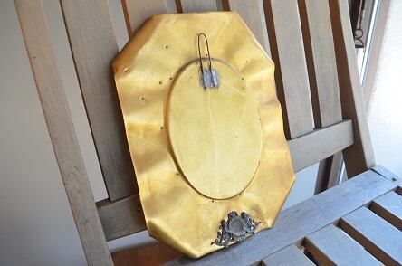 コンディション : 経年による、シミ、キズ、汚れ、サビなどありますが、大変レアで素敵な商品と思います。上下左右の端がくるっと巻かれていて、又、ミラーを中心にフリルの様な感じでとてもお洒落です。
