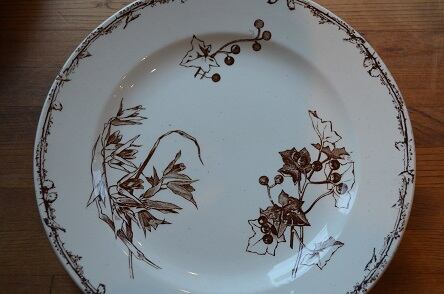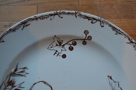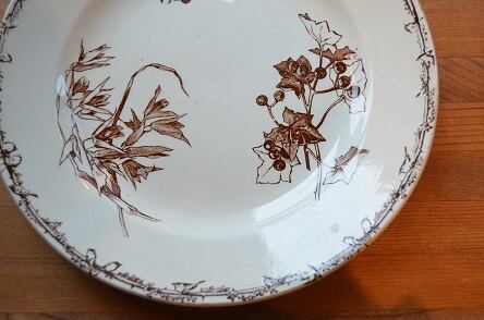 カラー : アイヴォリー地に、ダークブラウンの花と実。リムはダークブラウンの小鳥