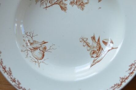 カラー : アイヴォリー地にブラウンの鳥と花のモチーフ