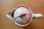 コンディション : 経年による、シミ、キズ、汚れ、貫入などあります。又、底に小さなカケ(写真3)があり、正面のローズの浮き上がった部分にも若干の極小さなカケ(写真2)がありますが、どちらもそれほど気にならないと思います。尚、蓋にヒビ(写真4)がありますが、現段階では割れるようなことはないと思います。全体的には大変良好で、とてもかわいらしいピッチャーと思います。