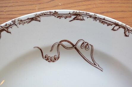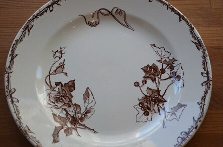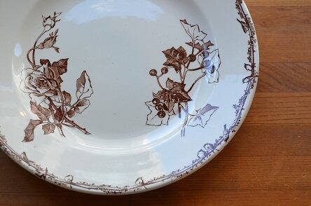 カラー : アイヴォリー地にダークブラウンのバラ、実、葉、蔓、リムはダークブラウンの小さなバード