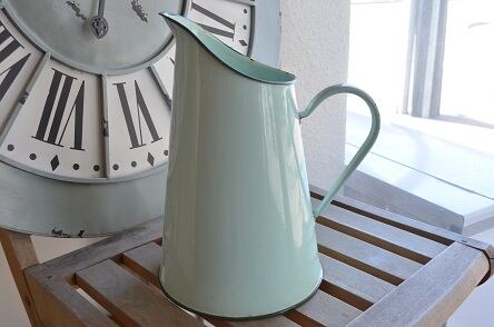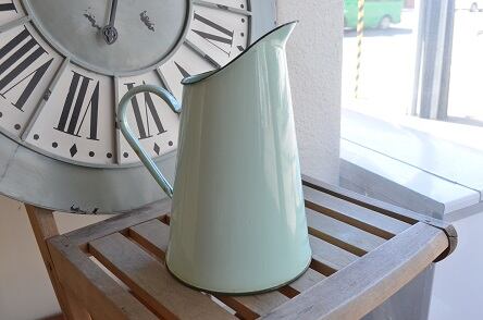 コンディション : 経年による、シミ、キズ、汚れなどあります。又、サビが上下リムや持ち手部分等にあります。特に上部の注ぎ口(写真4,5)がサビてカケていますが、リムが濃いグリーンの為、あまり目立ちません。全体的には大変綺麗で良好と思います。