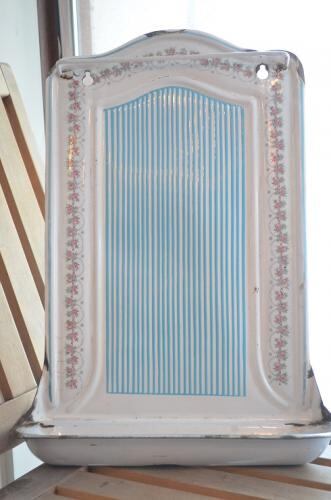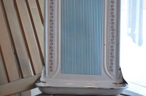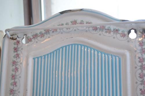 カラー :ホワイト地に薄いブルーのストライプ、ピンクのローズガーランド