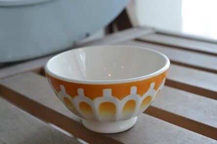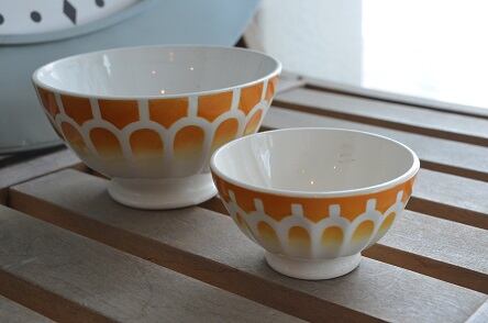 コンディション : 経年による、シミ、キズ、汚れ、貫入などありますが、目立ったカケはなく大変良好です。又、内側の3本線(写真3)は、製造時に付いたものと思われます。尚、写真5は、同タイプの普通の大きさのCボウルです。