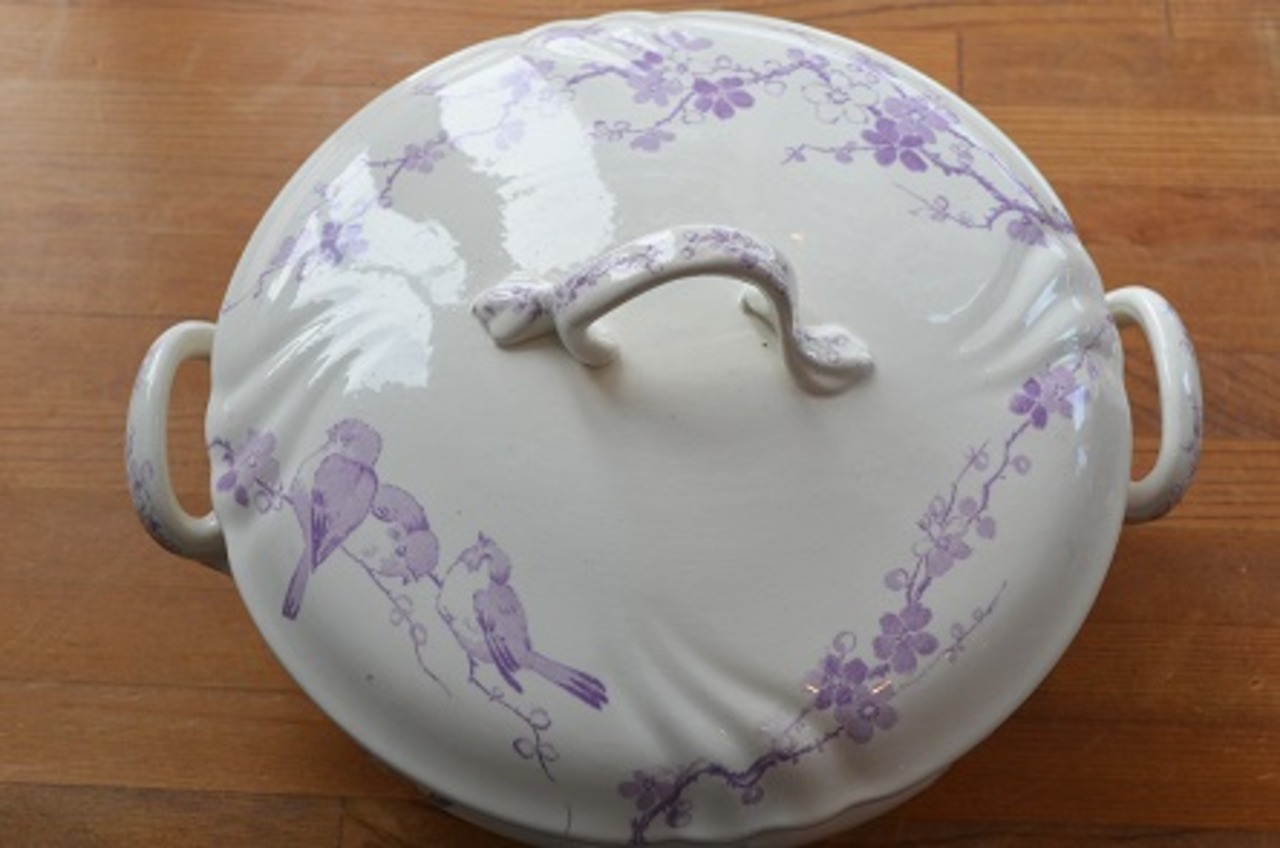 コンディション : 経年による、シミ、キズ、汚れ、貫入などあります。又、蓋の内側(写真4)と本体上部リムに極小さなカケ(写真5)がありますが、気にならないと思います。全体的には大変良好で、とても綺麗です。
