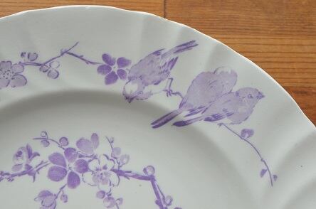 カラー : アイヴォリー地に薄いパープルのバードとフラワー柄