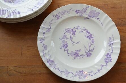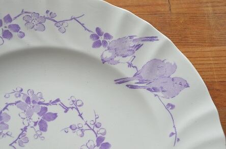 カラー : アイヴォリー地に薄いパープルのバードとフラワー柄