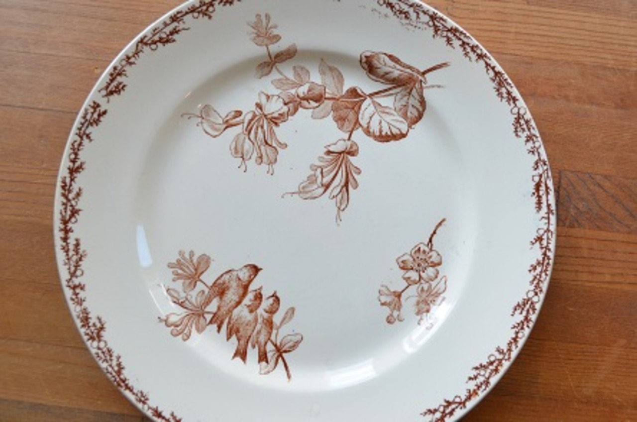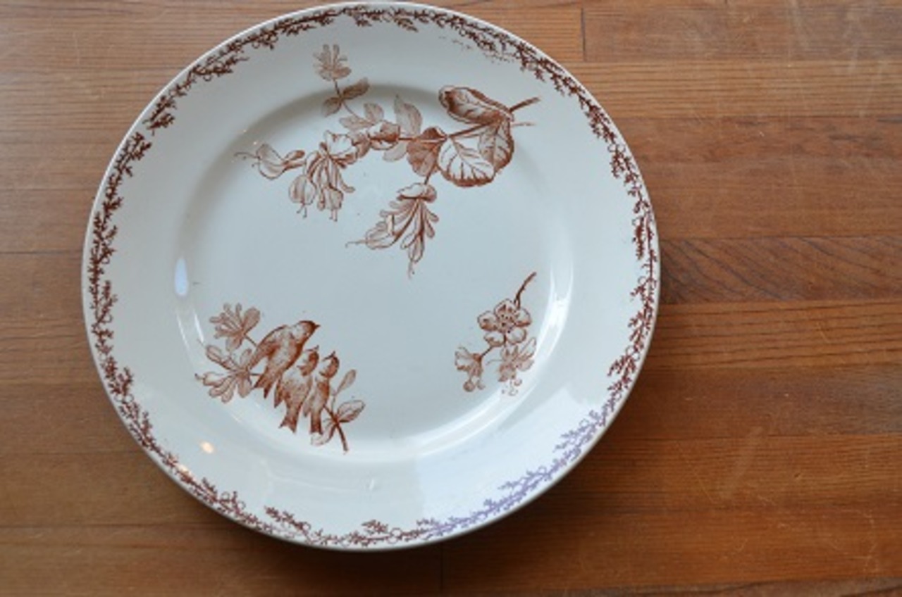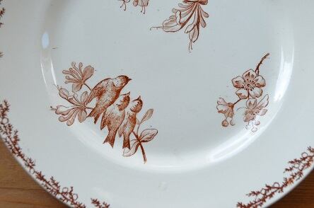 カラー : アイヴォリー地にブラウンの鳥、花のモチーフ