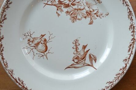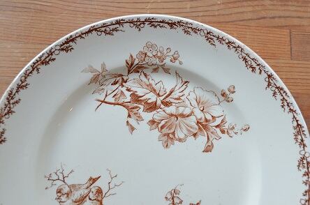 カラー : アイヴォリー地にブラウンの鳥と花のモチーフ