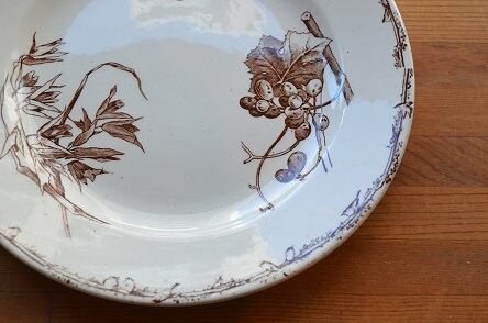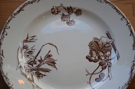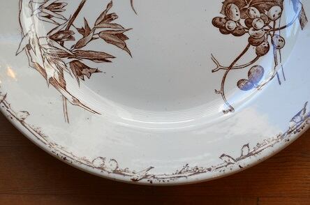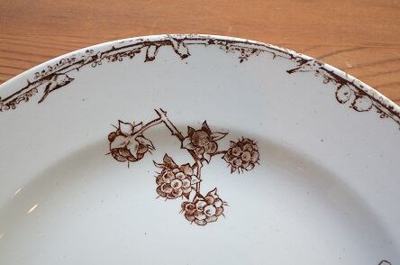 カラー : アイヴォリー地にダークブラウンの花、実、リムはダークブラウンの小さなバード