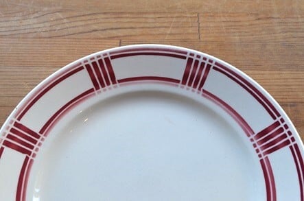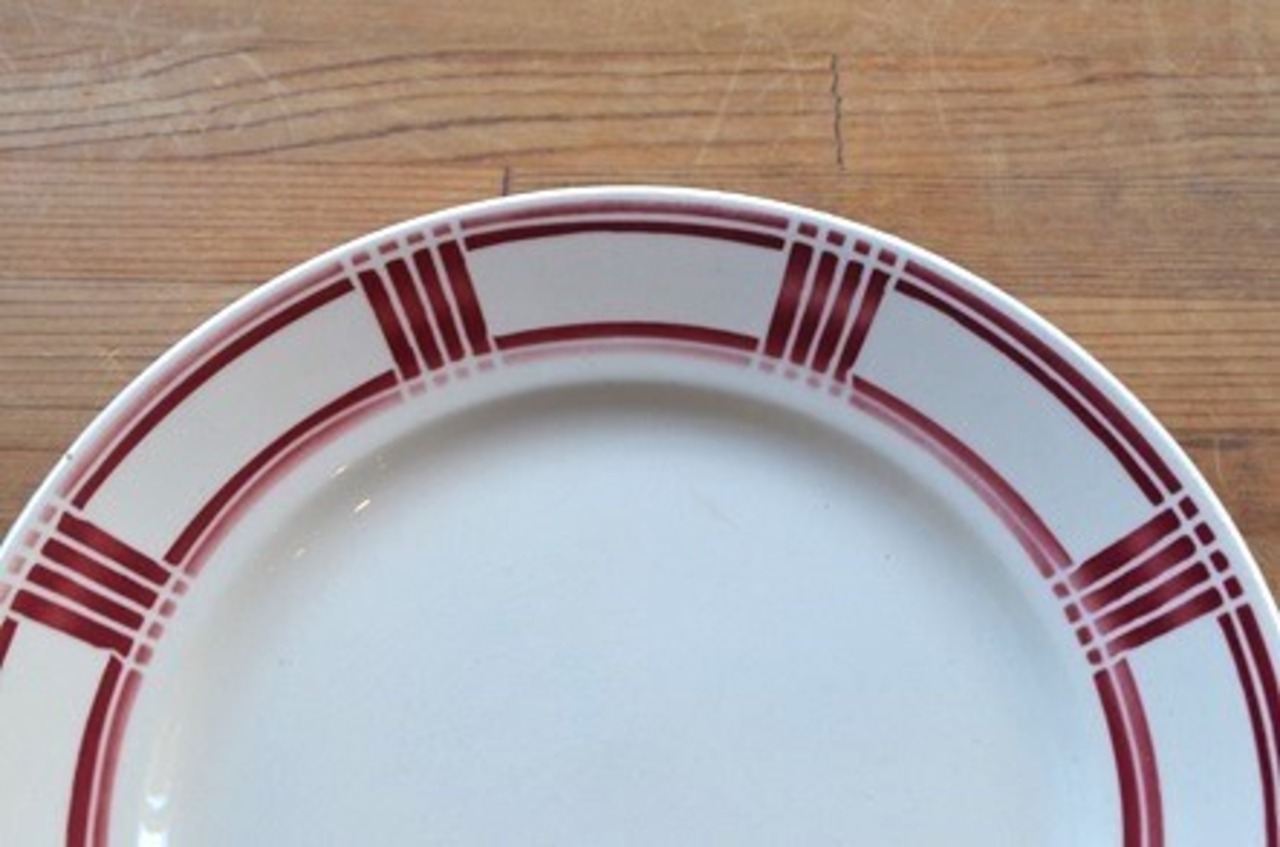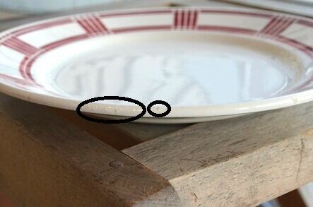 コンディション : 経年による、シミ、キズ、汚れ、貫入などあり、リムに製造時に付いた突起(写真4左〇と写真5右〇)があります。又、リムに窯傷以外に小さなカケが数か所(写真4右〇と写真5左〇)ありますが、あまり目立たないと思います。全体的には大変綺麗で良好と思います。尚、ダークピンクのラインが薄い部分(写真2)があります