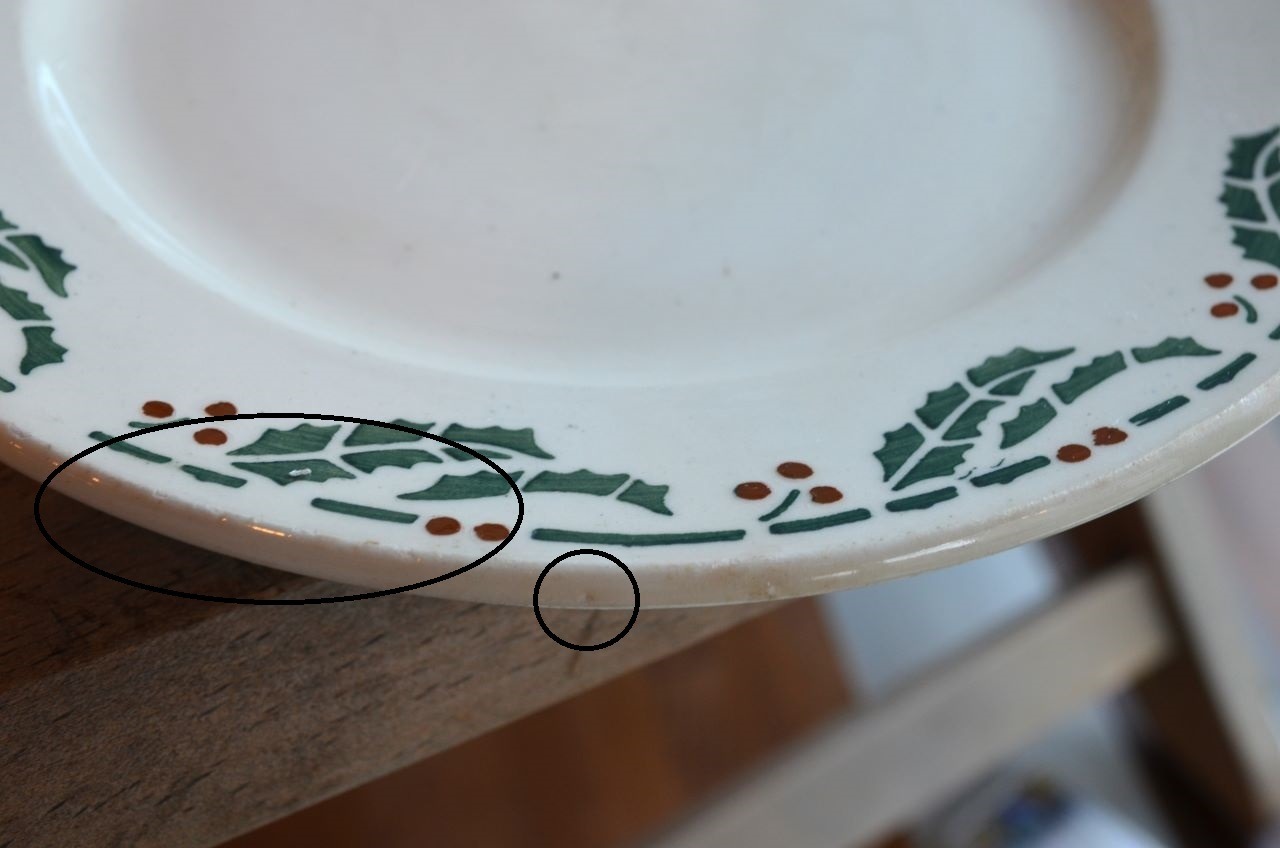 コンディション : 経年による、シミ、キズ、汚れ、貫入などあり、リムに極小さなカケとその周りにすれ感(写真4)があります。又、写真はありませんが、同様にリム全体に同じ様なことがあります。全体的には良好と思います。