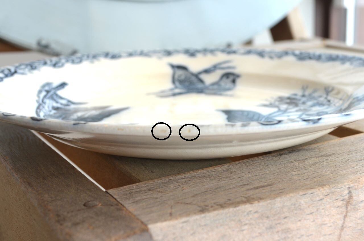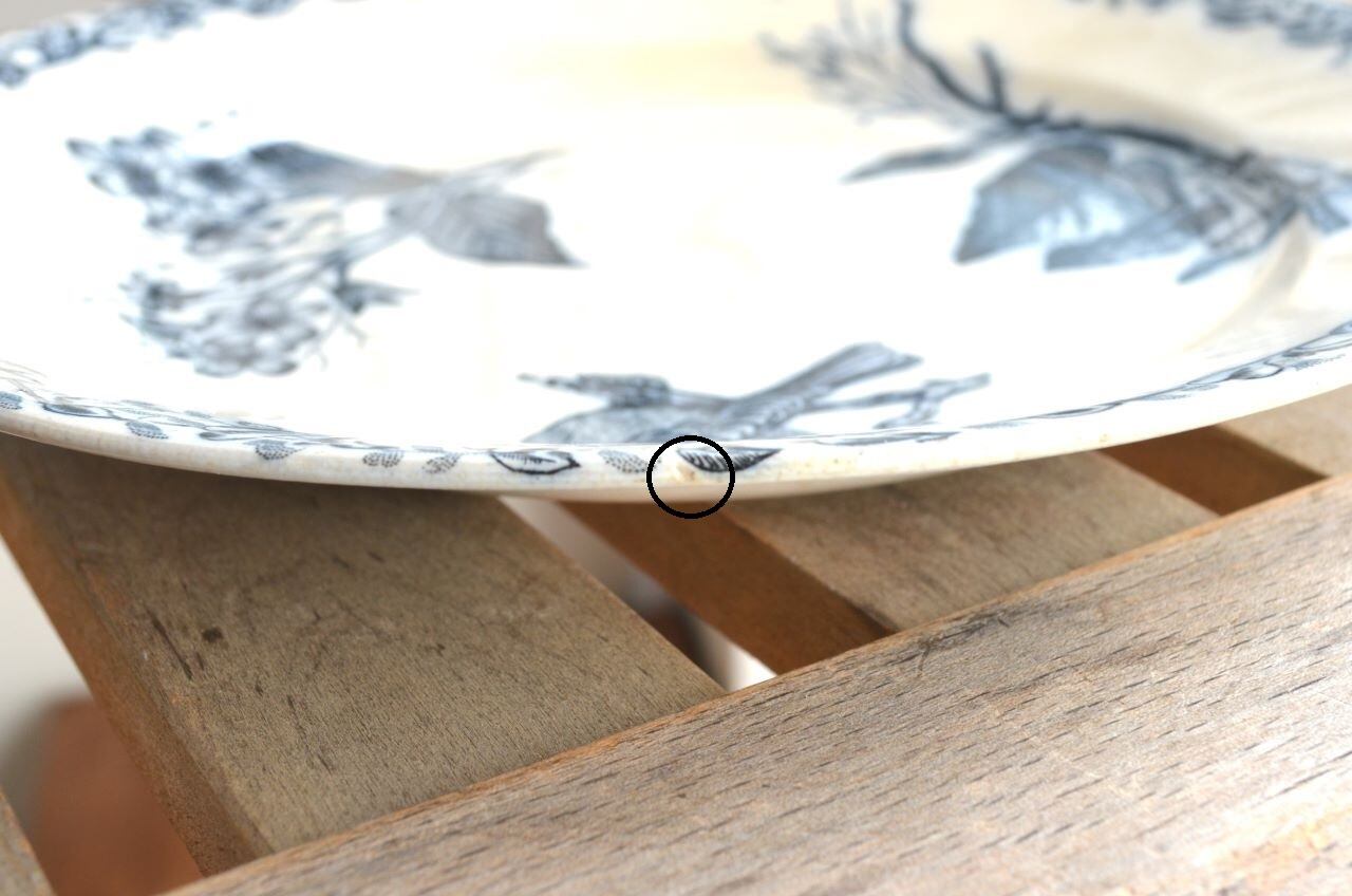 コンディション : 経年による、シミ、キズ、汚れ、貫入などあり、特にシミはキズの中に浸み込んでいます。又、リムに極小さなカケ(写真6~8)が数か所あり、若干の擦れ感もありますが、あまり目立たず、気にならないと思います。全体的には大変素朴なプレートで良好と思います。