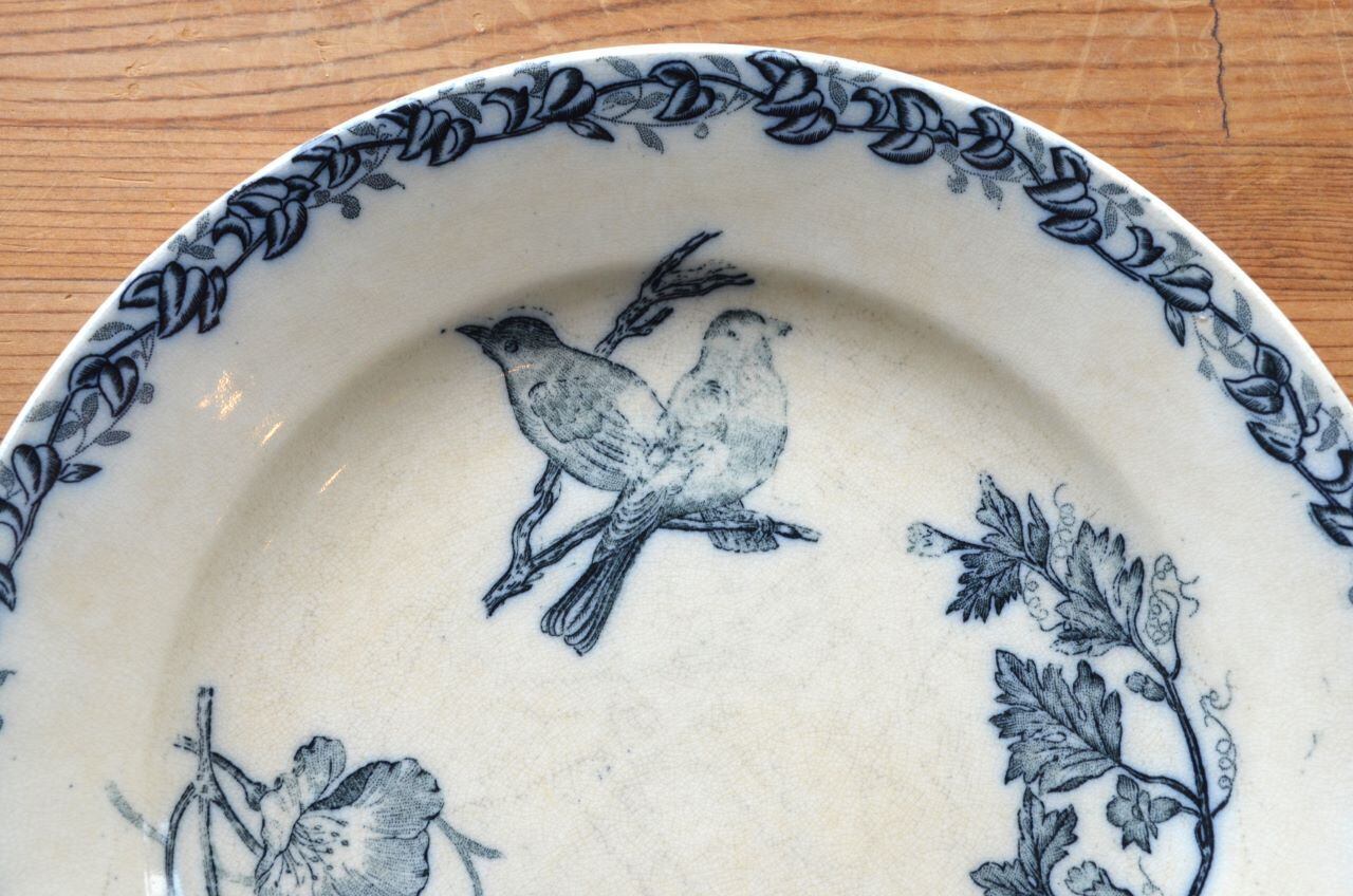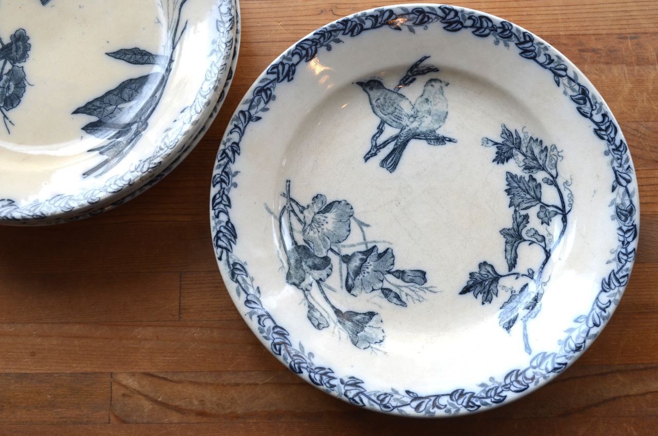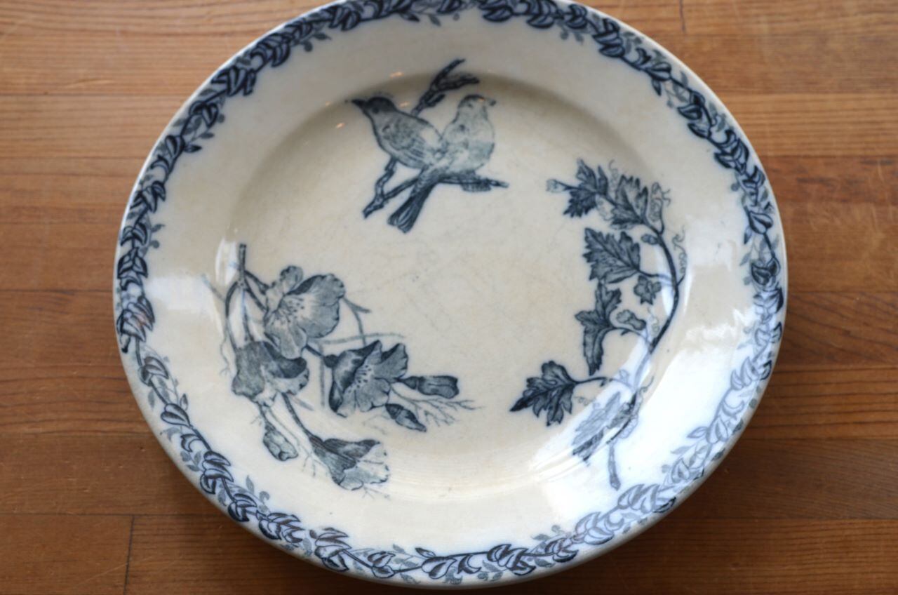 コンディション : 経年による、シミ、キズ、汚れ、貫入などあり、特にシミはキズに浸み込んでいますが、窯キズ以外に目立ったカケはありません。全体的には大変素朴なプレートで良好と思います。